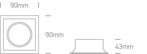 Foco empotrable Dark Light cuadrado orientable MR16 con portalámparas GU10. Cumple con la norma EN60598-1 y cualquier otra norma específica.