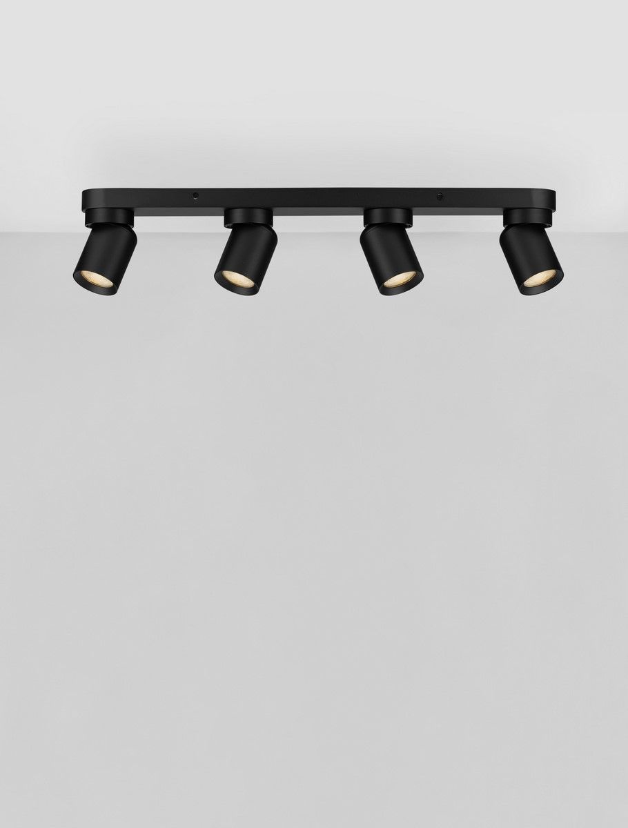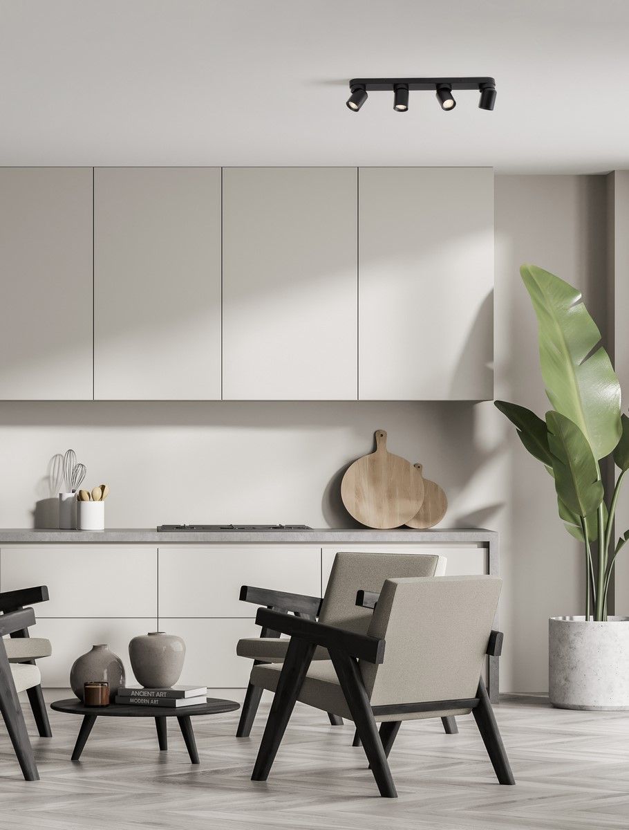 La luminaria de techo AMECY de Nova Luce, en color negro, destaca por su diseño minimalista y moderno. Ideal para espacios contemporáneos, ofrece una iluminación direccional y funcional, perfecta para salones, pasillos o áreas de trabajo.