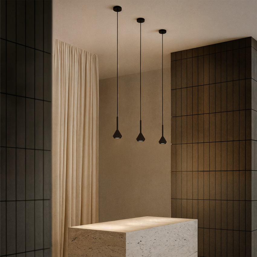 Bologna es una luminaria LED suspendida de diseño elegante que combina presencia escultórica y ligereza visual. Su cuerpo de aluminio con forma cónica dirige un haz de luz cálido y preciso de 24°, ideal para iluminación puntual en espacios interiores.