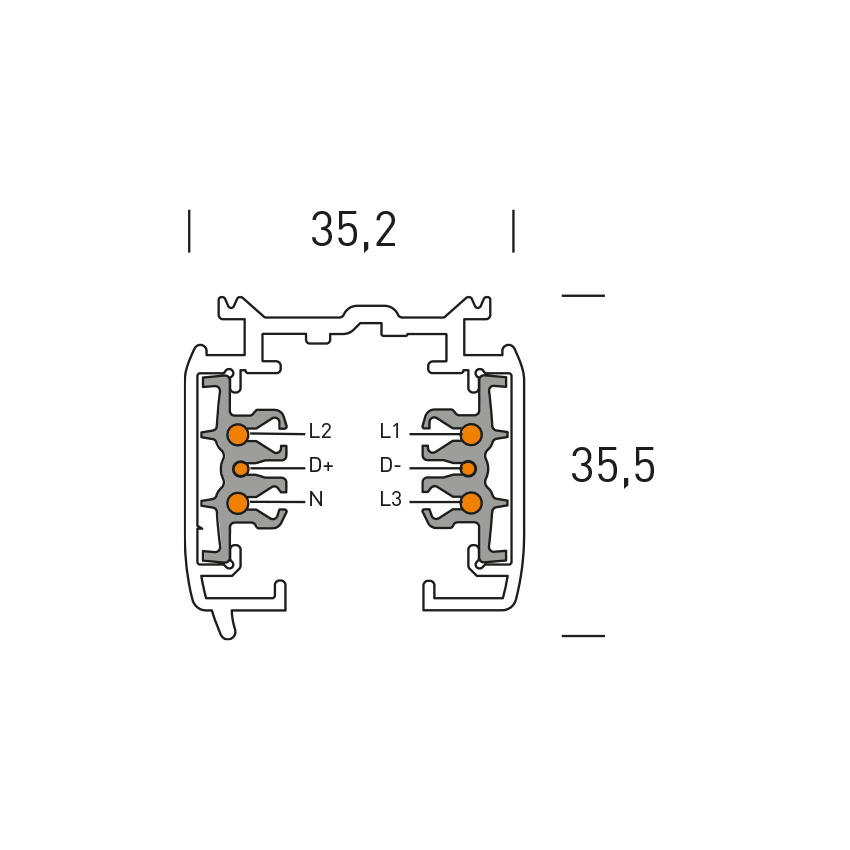 CARRIL 3F SUPERFICIE 2m DALI Medidas: 35,2×35,5 mm.