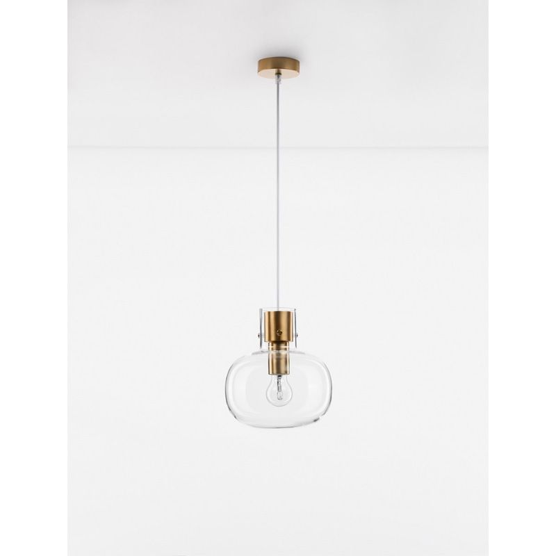 Clear Glass White Cord Brass Gold Metal LED E27 1×12 Watt 230 Volt IP20 Bulb Excluded D: 22 H 1: 25 H 2: 228 cm