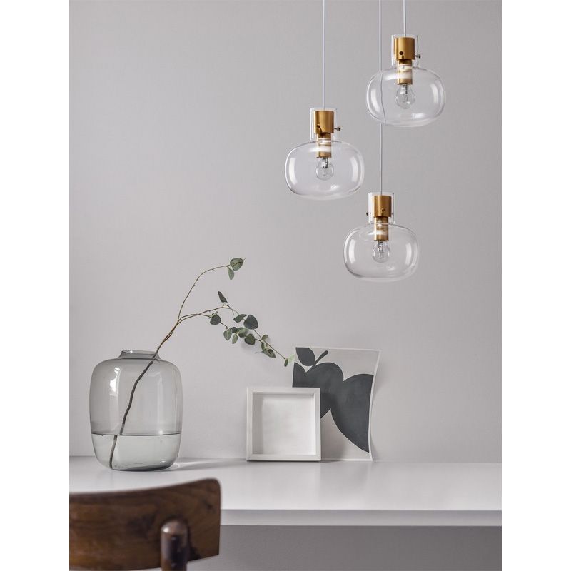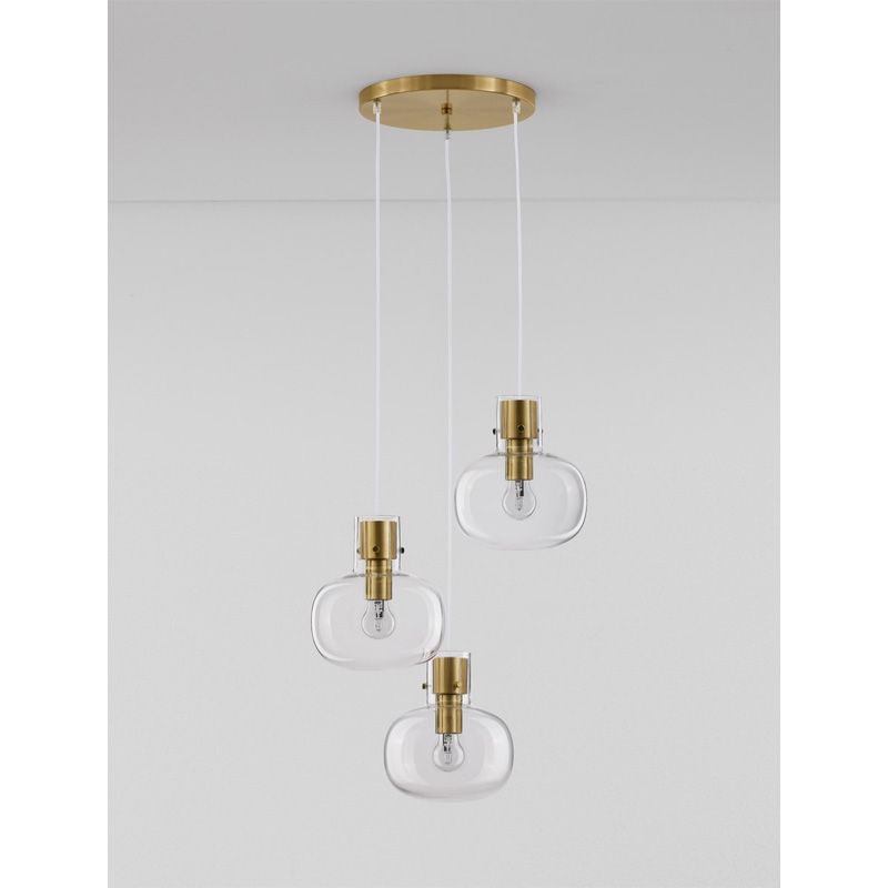 Clear Glass White Cord Brass Gold Metal LED E27 3×12 Watt 230 Volt IP20 Bulb Excluded D: 30 H: 178 cm