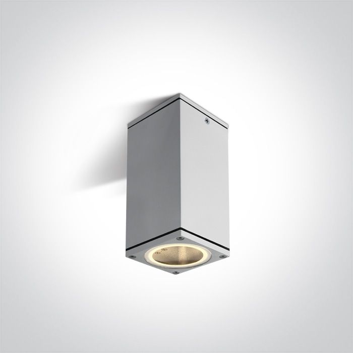 Downlight de techo con diseño rectangular, fabricado en aluminio con casquillo GU10 y clasificación IP54. Ideal para exteriores.