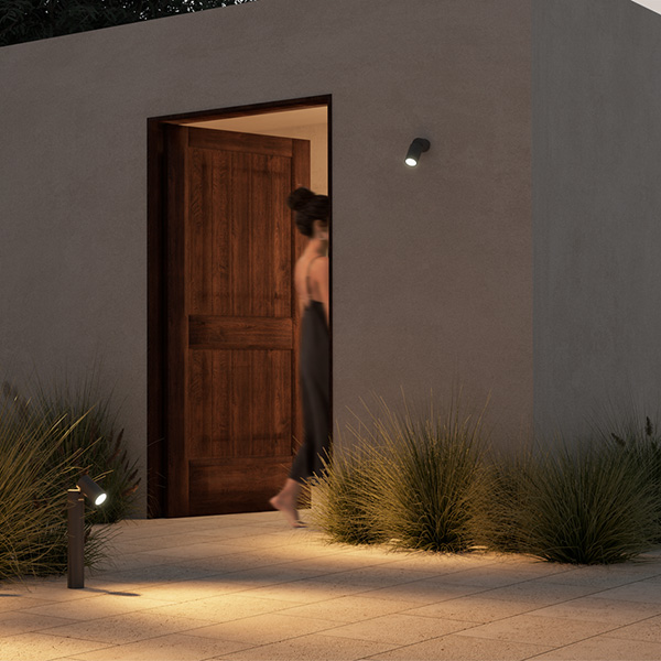 Ecuador Pared es un aplique de exterior con diseño cilíndrico y cabezal inclinable que permite orientar el haz de luz con precisión. Su estructura compacta y minimalista se integra fácilmente en proyectos de iluminación arquitectónica exterior.