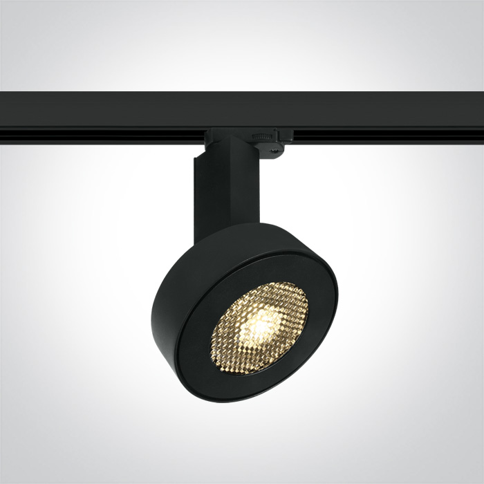 Foco de carril LED COB de 30W Honeycomb ONE Light, disponible en blanco y negro, con opciones de luz cálida (3000K) y fría (4000K). Ideal para espacios comerciales.