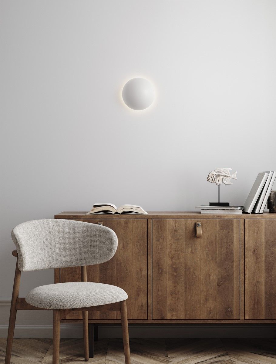La lámpara de pared IONA de Nova Luce, en blanco, ofrece un diseño minimalista y moderno. No es regulable, pero aporta una iluminación suave, ideal para espacios contemporáneos.