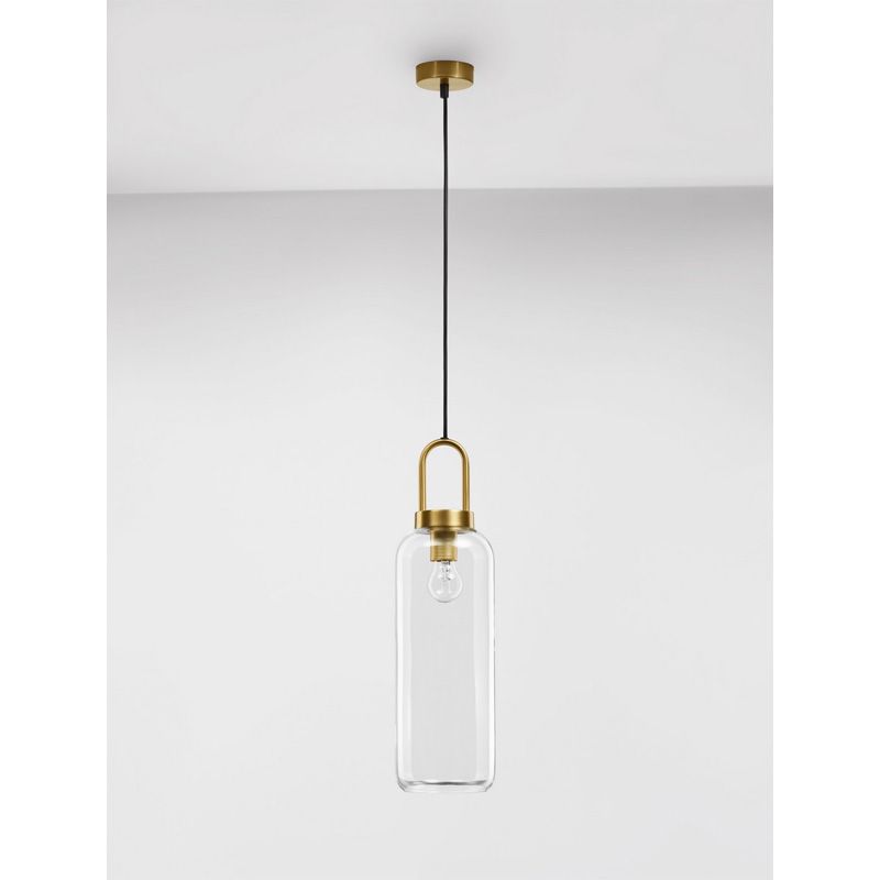 Clear Glass Black Cord Brass Gold Metal LED E27 1×12 Watt 230 Volt IP20 Bulb Excluded D: 15.5 H 1: 53 H 2: 255 cm