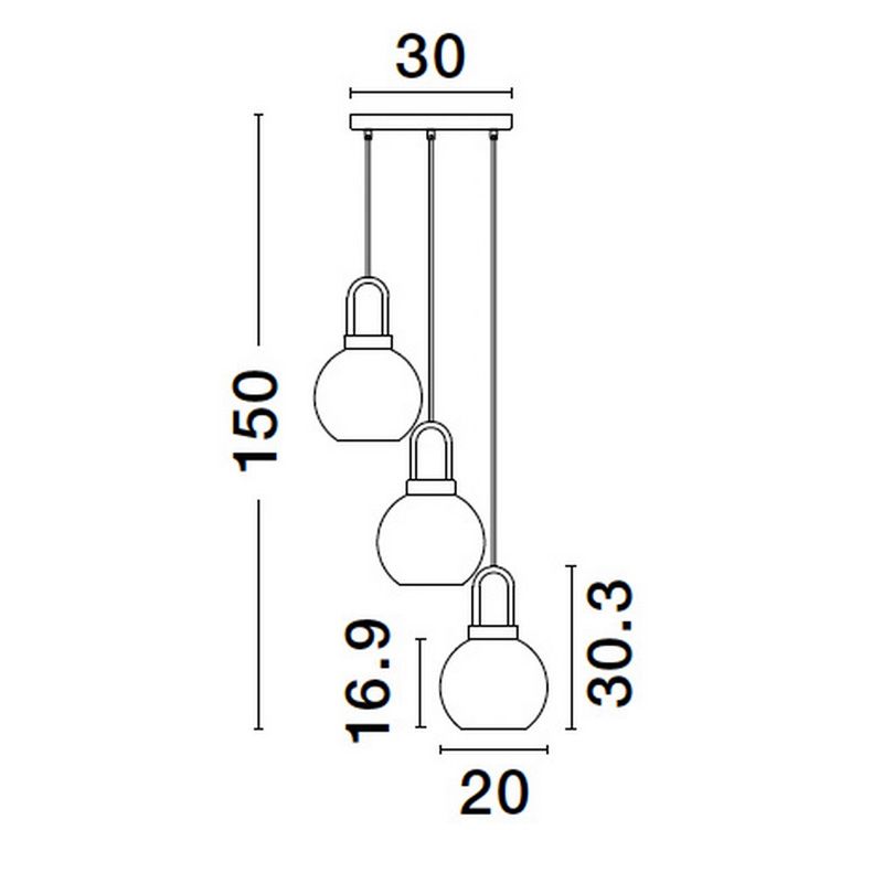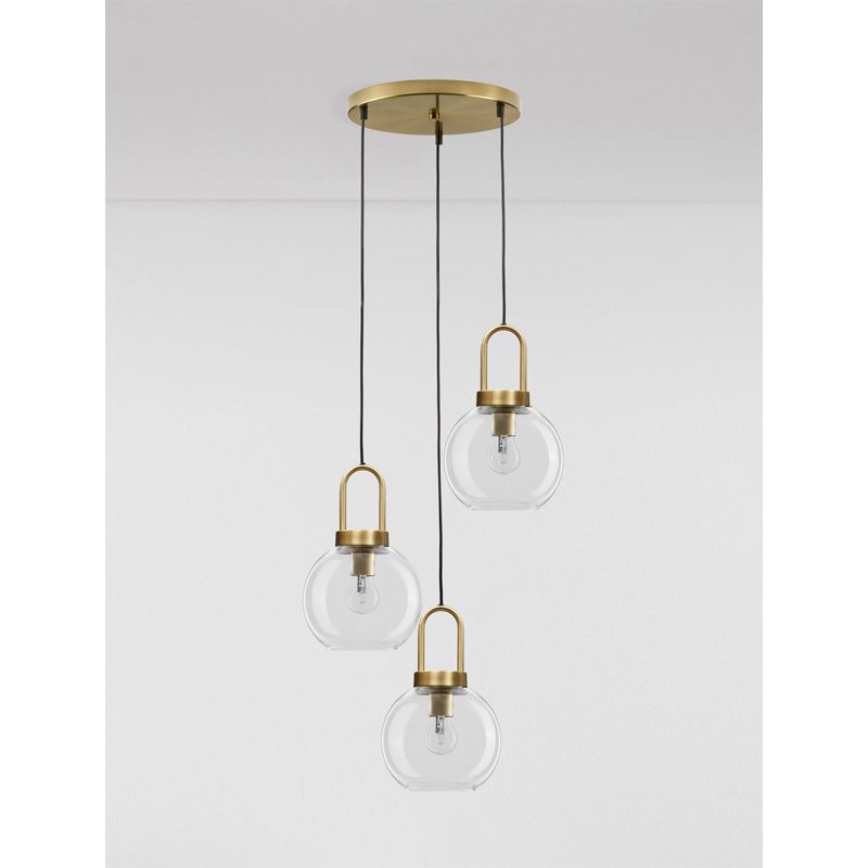 Clear Glass Black Cord Brass Gold Metal LED E27 3×12 Watt 230 Volt IP20 Bulb Excluded D: 30 H 1: 30.3 H 2: 150 cm