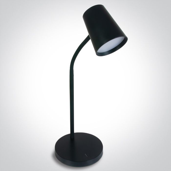 Lámpara de sobremesa LED de 5W, regulable en tres niveles, disponible en blanco y negro. Perfecta para oficinas, áreas de trabajo o espacios de lectura. Diseño minimalista y funcional.