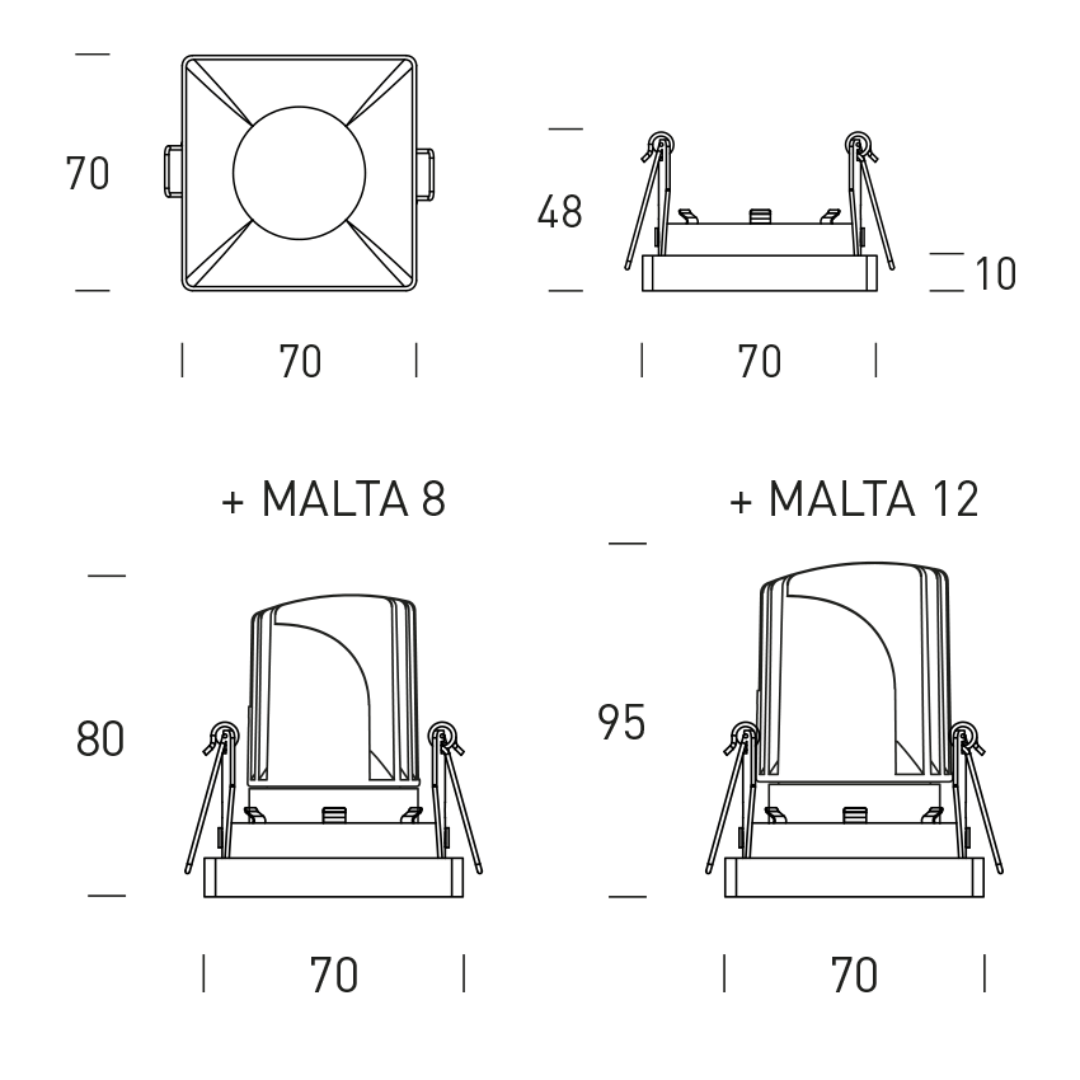MALTA Acc. SEMI RECESSED SQUARE FIJO – PARA GU10 Medidas 70x70x48 Driver NO incluido Interior.