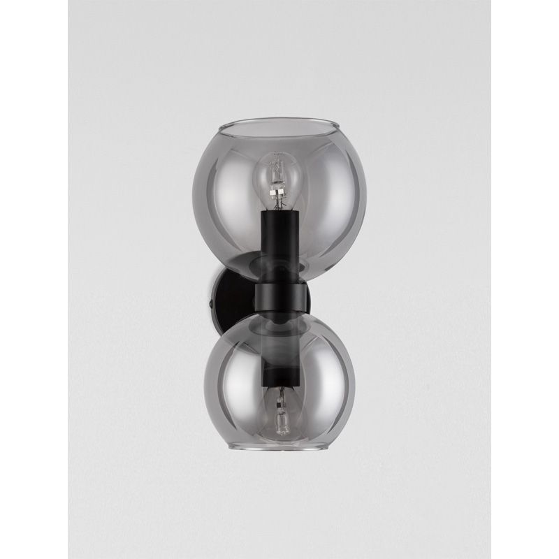 Smoky Glass Black Metal Base LED E14 2×5 Watt 230 Volt IP20 Bulb Excluded W: 16.5 H: 37.5 cm