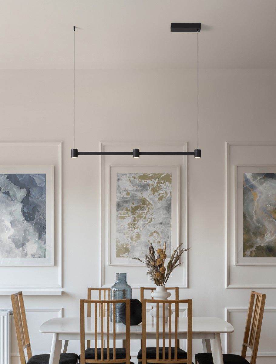 La lámpara colgante PUIZE 9002050 en color negro arenado (Sandy Black) y fabricada en aluminio, es una luminaria de diseño moderno y estilizado, ideal para espacios contemporáneos. Con una potencia de 21W, voltaje de 230V y luz cálida de 3000K, esta lámpara es perfecta para crear un ambiente acogedor en interiores. Sus dimensiones son 80 cm de largo, 6 cm de ancho y 140 cm de altura, lo que la convierte en una excelente opción para iluminar comedores, barras de cocina o áreas de trabajo. Con un índice de protección IP20, es adecuada para uso en interiores, combinando estilo y funcionalidad en cualquier ambiente.