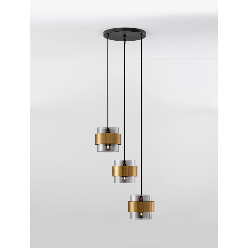 Smoke Glass Brass Gold Metal LED E27 3×12 Watt 230 Volt IP20 Bulb Excluded D: 45 H: 170 cm