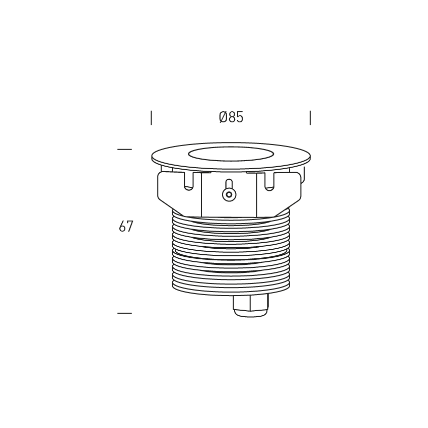 SWITZERLAND 10 20º IP67 IK08 500mA ALUMINIO CRI90 3000K Clase: III Medidas: 85×67 mm Diametro empotrar: hormigón 76×120 mm.
