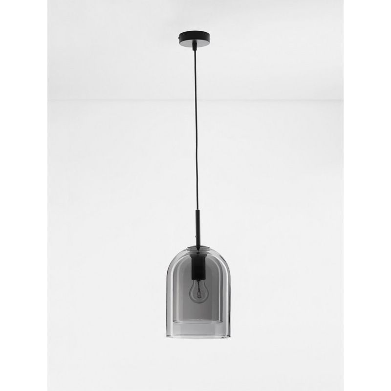 Double Layered Smoky Glass Black Cord Black Metal Base LED E27 1×12 Watt 230 Volt IP20 Bulb Excluded D: 18 H: 240 cm