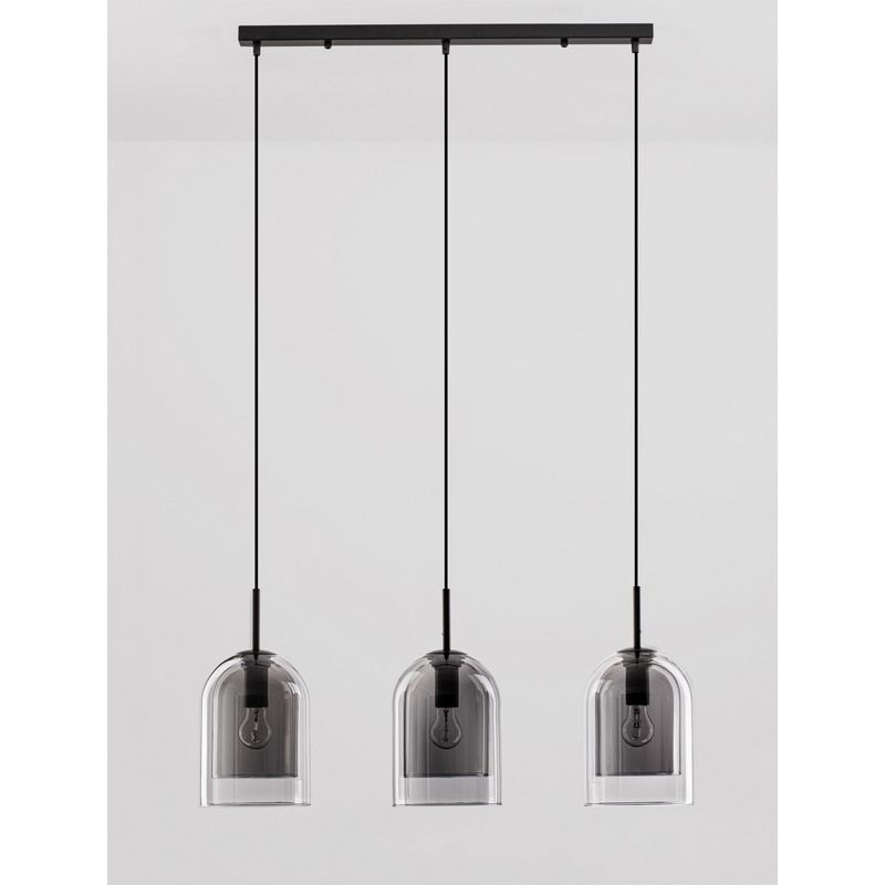 Double Layered Smoky Glass Black Cord Black Metal Base LED E27 3×12 Watt 230 Volt IP20 Bulb Excluded L: 70 H: 158 cm